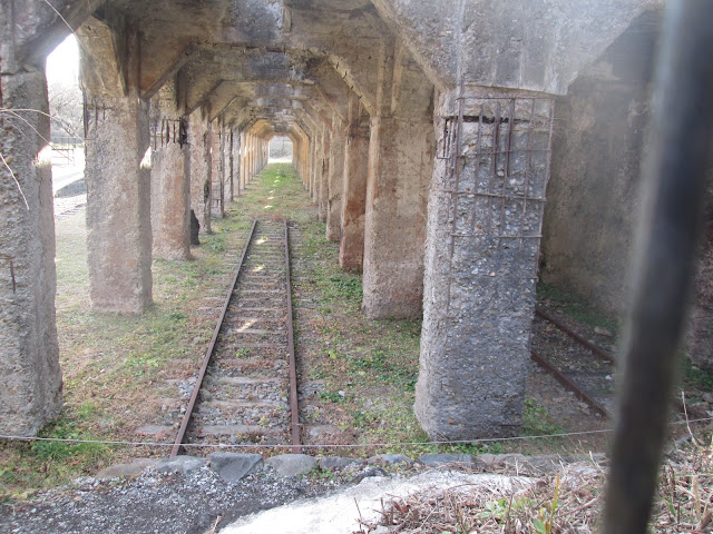 駐車場から旧太子駅遺構を見下ろす。。。。。右奥が浅間山